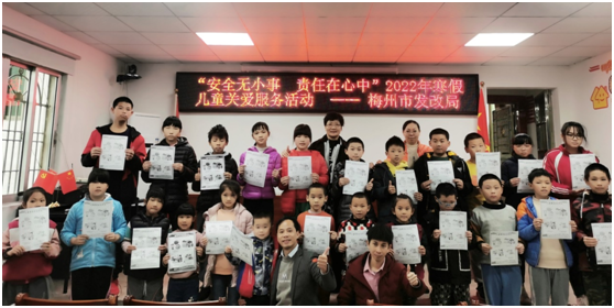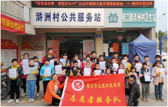 為深入學習貫徹黨的十九屆六中全會精神,貫徹落實習近平總書記關於兒童和兒童工作的重要論述,常態化做好寒假兒童關愛服務工作,1月14日下午,市發展改革局婦委會組織誌願者,到我局創建全國文明城市工作掛點社區——梅縣區程江鎮滸洲村,給4-16歲孩子開展“安全無小事 責任在心中”2022年寒假兒童關愛服務活動。