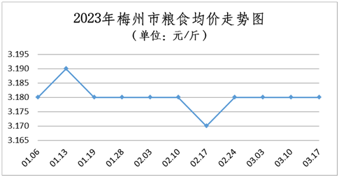 糧油價格基本穩定。本周糧食均價為3.18元/斤,環比(與3月10日比,下同)持平,同比(與2022年3月17日比,下同)上升1.27%;食用油均價為96.29元/桶(5L),環比下降0.08%,同比上升3.11%。
