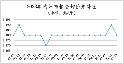 糧油價格基本穩定。本周糧食均價為3.18元/斤,環比(與5月12日比,下同)下降0.31%,同比(與2022年5月19日比,下同)上升0.32%;食用油均價為96.51元/桶(5L),比上周微降0.01%,同比上升2.13%。