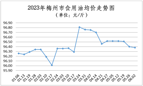 糧油價格基本穩定。本周糧食均價為3.18元/斤,環比(與5月26日比,下同)持平,同比(與去年同期相比,下同)上升0.32%;食用油均價為96.38元/桶(5L),環比下降0.02%,同比上升1.68%。