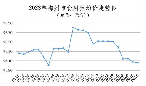 糧油價格基本穩定。本周糧食均價為3.14元/斤,環比(與6月16日比,下同)持平;食用油均價為96.06元/桶(5L),環比下降0.02%。