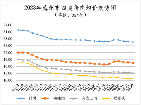 2023年第26周(6月30日),我市主要農副產品供應充足,市場購銷秩序良好,與上周(6月25日)相比,所監測的糧油價格波動細微,豬肉價格延續下跌行情,蔬菜價格小幅上升(具體價格詳見附表)。