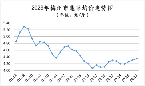受上遊豬價持續上漲影響,終端豬肉零售價格保持跟漲行情,短期豬市利空因素仍多,預計近期豬價或以小幅調整為主,出現大幅漲落的可能性不大。近日高溫、降雨天氣依舊表現頻繁,蔬菜價格繼續上漲;受前期連續高溫影響,部分葉類蔬菜苗期被曬傷,目前蔬菜上市量有所萎縮,預計短期內各類蔬菜價格或漲多跌少。
