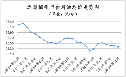 糧油價格穩中微降。本周糧食均價為3.14元/斤,環比(與2024年第10周相比,下同)持平;食用油均價為95.37元/桶(5L),環比下降0.04%。