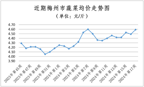 蔬菜價格季節性上漲。監測的30種蔬菜呈“7降23升”,零售均價為4.59元/斤,環比上升2.23%。