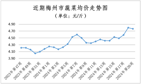 春節後,我市牛肉價格一直處於下跌的狀態,市場肉類消費格局改變,在多方因素的共同作用下,豬肉等其他肉類價格走弱;目前正處於肉類消費淡季,預計短期內肉價繼續呈低位運行態勢。本周溫度適宜,蔬菜生長勢頭良好,上市量增加,價格有所回落;隨著“龍舟水”到來,預計蔬菜價格小幅上漲的可能性較大。