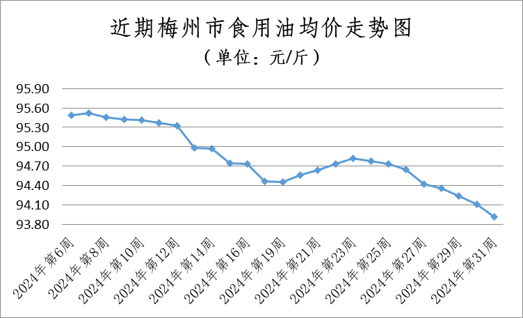 糧油價格保持穩定。本周糧食均價為3.14元/斤,環比(與2024年第30周相比,下同)持平;食用油均價為93.92元/桶(5L),環比下降0.2%。