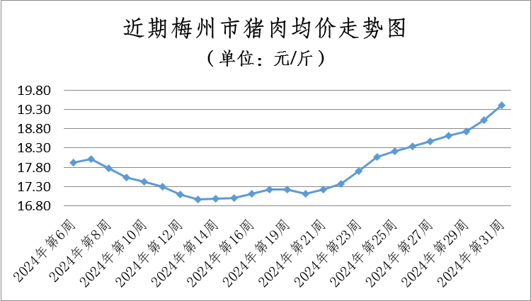 豬肉價格方麵:在生豬價格連續上漲的拉動下,終端豬肉零售價格保持漲勢;目前生豬價格漲勢不減,預計後期豬肉零售價格跟漲的可能性較大。蔬菜價格方麵:高溫氣候影響蔬菜的生長和產品質量,是導致蔬菜價格持續上漲的主要因素;現正值台風多發季節,雨水與高溫交替出現,對後市蔬菜價格帶來不確定性,短期我市蔬菜價格小幅上漲的概率較大。