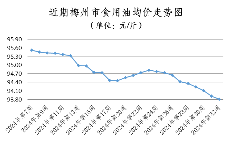 糧油價格保持穩定。本周糧食均價為3.23元/斤,環比(與2024年第30周相比,下同)持平;食用油均價為93.81元/桶(5L),環比下降0.12%。