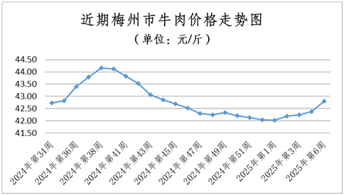 牛肉 | 元/斤 | 42.81 | 1.01% |