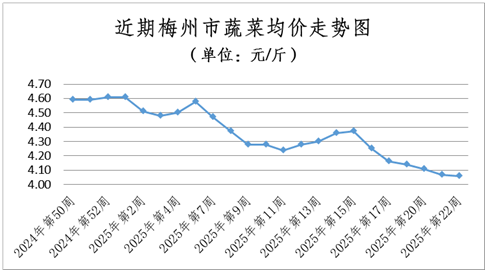 端午節期間農貿市場各類商品供應充足,豬肉需求雖較平日略有提升,但消費集中釋放效應不及春節等長節,加之高溫天氣抑製肉類消費熱情,假期需求增量仍難抵生豬市場供應寬鬆的壓力,價格整體呈現偏弱運行態勢;隨著節後需求進一步回落,預計豬肉價格或延續小幅下跌走勢。節前我市雖雨水天氣較多,但未對蔬菜價格造成明顯影響,且當前已進入夏季蔬菜集中上市期,蔬菜供應較為充足,未出現節日性上漲,價格呈穩中有降趨勢;短期內蔬菜產能將持續釋放,蔬菜價格或維持低位震蕩格局。