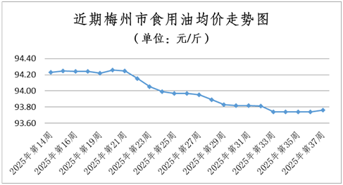 糧油價格基本穩定。本周糧食均價為3.22元/斤,環比(與2025年第36周相比,下同)持平;食用油均價為93.76元/桶(5L),環比上升0.02%。