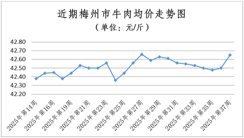 牛肉 | 元/斤 | 42.65 | 0.35% |