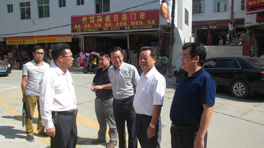 楊偉南主任(右三)察看五華縣周江基層供銷社危舊房改造現場