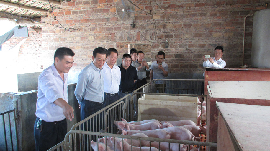 楊偉南主任(左二)察看五華縣華陽養豬專業合作社