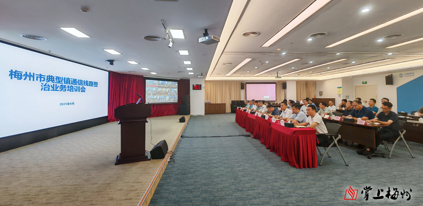 掌上梅州訊 6月18日,梅州市典型鎮圩鎮通信線路整治業務培訓會在梅城召開。會議特邀省通信管理局相關領導、專家作專題培訓,市“百千萬工程”指揮部、市工業和信息化局、市通信建設管理辦公室、市通信行業協會和全市76個典型鎮以及四家運營商、鐵塔公司代表共300餘人,通過“主會場+8個分會場”視頻連線方式,齊聚“雲端”,共商“三線”整治大計,在我市“百千萬工程”三年初見成效的關鍵節點注入強勁的數智動能。