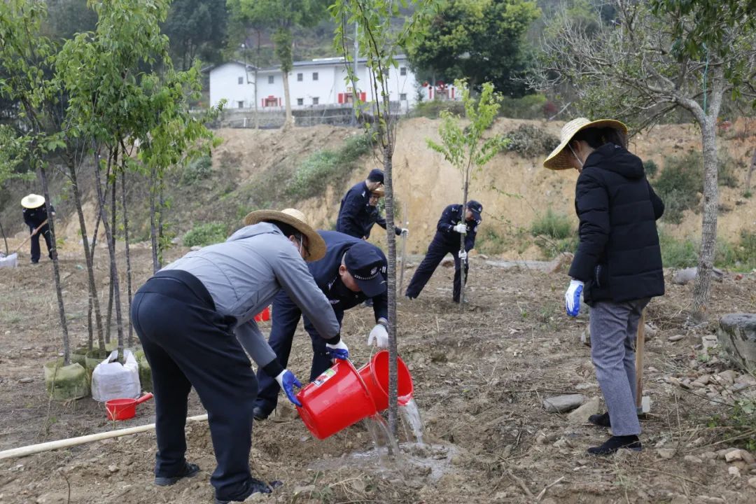 市戒毒所黨委堅決貫徹執行市委、市政府綠美梅州生態建設行動工作部署,以實際行動助力“百千萬工程”。3月1日,市戒毒所政委劉琦在水車鎮鎮長陳丹的陪同下,帶領幹警職工到掛點聯係村坑尾村開展綠美梅州“千村增綠先鋒行”植樹活動。駐鎮幫鎮扶村工作隊、駐村工作組、村“兩委”幹部和黨員誌願者共同參與。