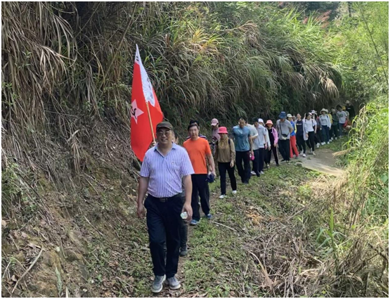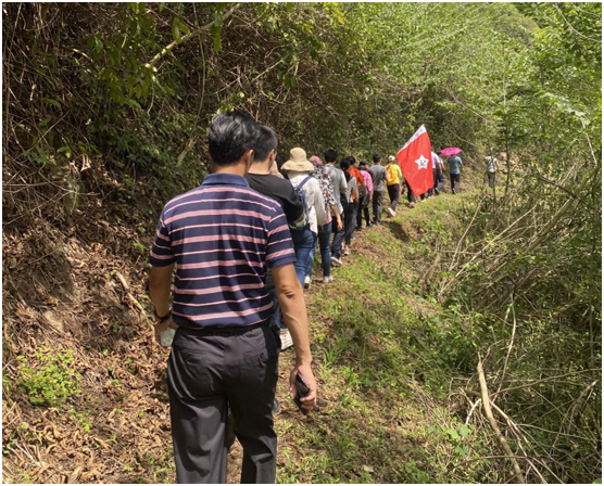 烈日炎炎擋不住大家追尋革命先烈足跡的腳步。在局領導的帶領下,局共青團員、青年幹部們重走5公裏紅色遊擊通道,重溫用鮮血鑄就的曆史。山區的革命通道越是艱險,越是讓我們深刻認識紅色政權的來之不易、感受到今天的和平生活離不開革命先烈的奮勇犧牲。整個徒步行程近兩個小時,沒有一個人掉隊,充分展現了我局團員、青年幹部不畏艱辛、奮勇拚搏的交通人精神。