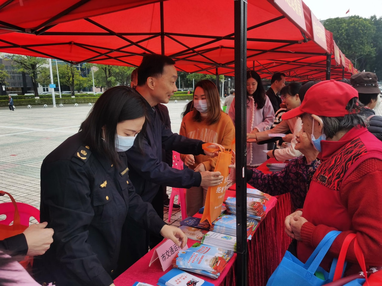 活動中,我局緊緊圍繞“誠實守信 一路暢行”宣傳主題,通過向廣大群眾發放信用交通手冊、手提袋及現場谘詢等方式,重點加強對《廣東省社會信用條例》和《廣東省道路運輸條例》等法規的宣傳解讀,大力宣傳交通運輸信用體係建設舉措,傳播誠信理念、凝聚誠信共識、弘揚誠信文化,推動交通運輸信用體係建設高質量發展,為加快建設交通強市提供信用支撐。