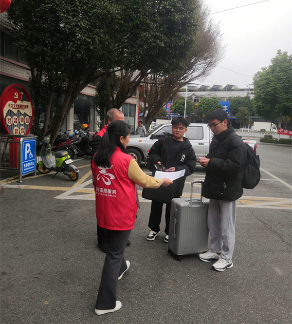 活動現場,交通運輸黨員幹部誌願者們通過發放宣傳頁和安全出行倡議書的方式向群眾和旅客宣傳交通運輸安全知識和文明出行注意事項,熱心解答交通出行問題,提醒群眾自覺抵製各類交通違法行為,遵守交通法律法規,做到安全文明出行;還為出行旅客提供搬運行李、提供乘車引導、幫助維持現場乘車秩序等暖心服務,贏得廣大群眾和旅客的好評。