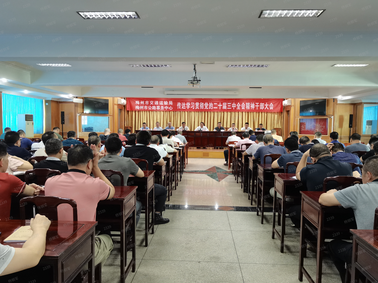 7月29日,市交通運輸局、市公路事務中心召開幹部大會,傳達學習貫徹習近平總書記在黨的二十屆三中全會上的重要講話精神和全會精神,貫徹落實全省、全市幹部大會精神,對抓好學習宣傳貫徹工作,推動進一步全麵深化改革、推進中國式現代化的梅州交通實踐進行動員部署,推動落實。市人大常委會副主任、市交通運輸局黨組書記、市公路事務中心黨委書記謝文威主持會議並講話。市交通運輸局、市公路事務中心全體幹部職工及下屬單位班子成員參加了會議。