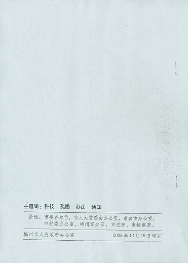 關於印發梅州市科學技術獎勵辦法的通知