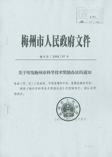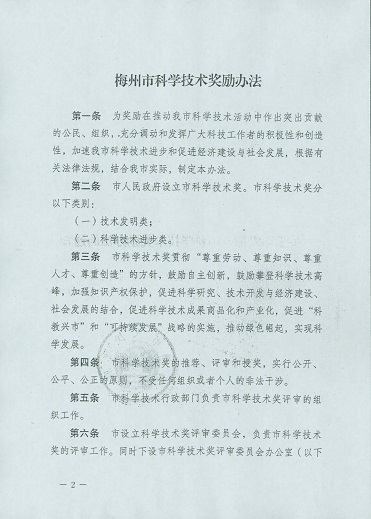 梅州市人民政府門戶網站 梅州市科學技術局 管理製度 關於印發梅州市科學技術獎勵辦法的通知
