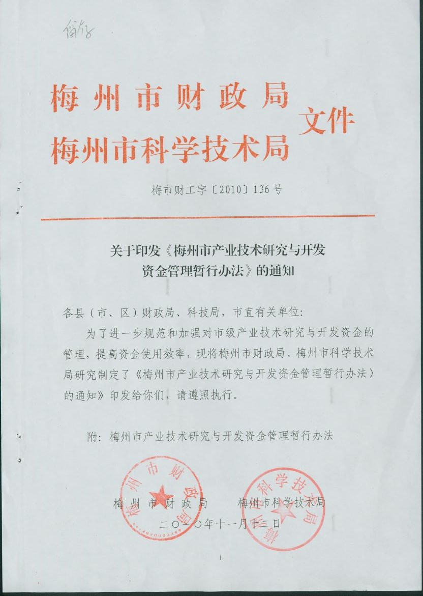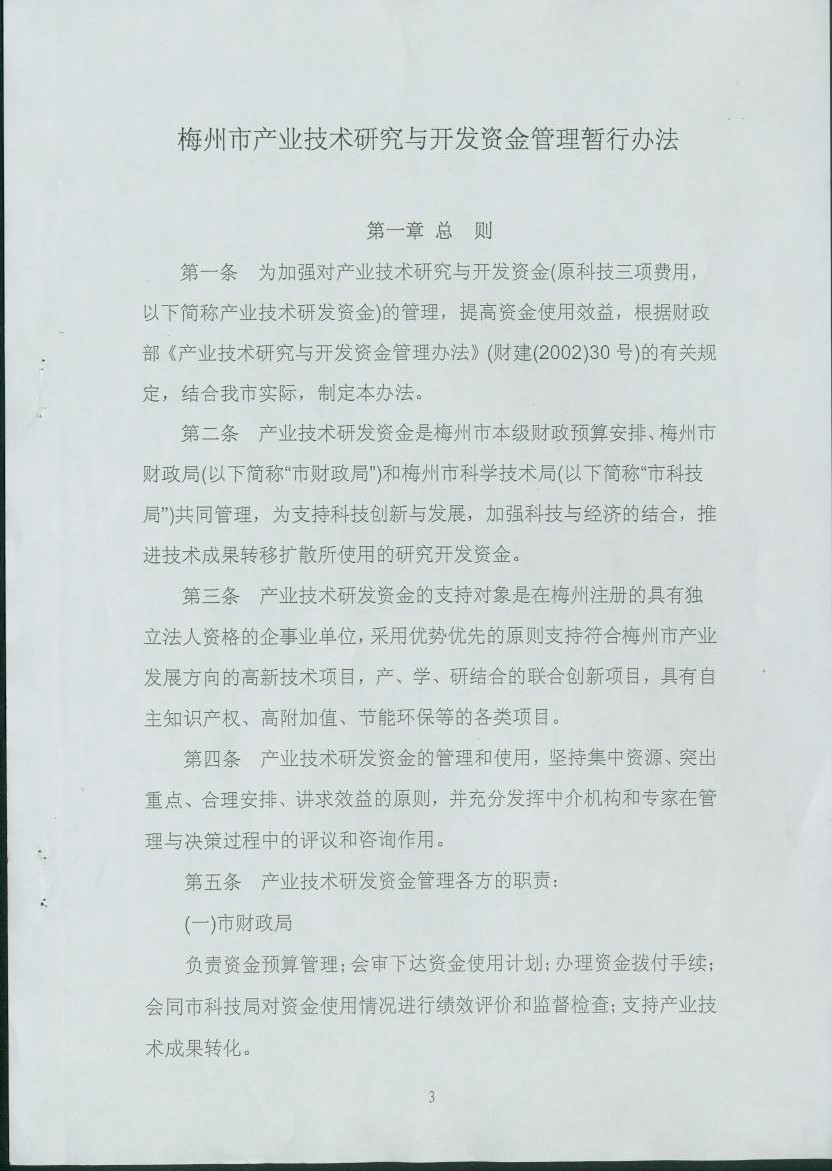 梅州市人民政府門戶網站 梅州市科學技術局 管理製度 梅州市產業技術研究與開發資金管理暫行辦法