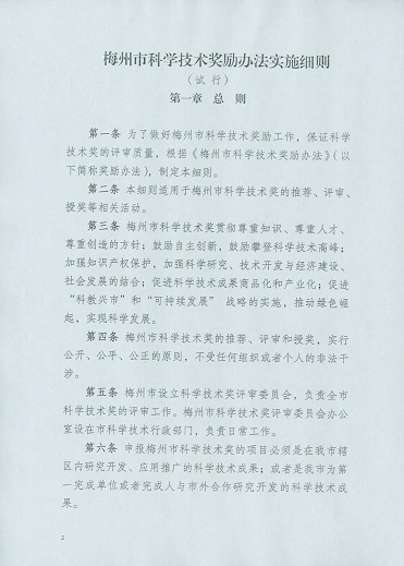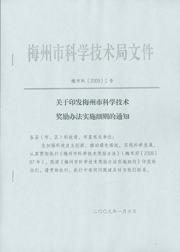梅州市人民政府門戶網站 梅州市科學技術局 管理製度 關於印發梅州市科學技術獎勵辦法實施細則的通知