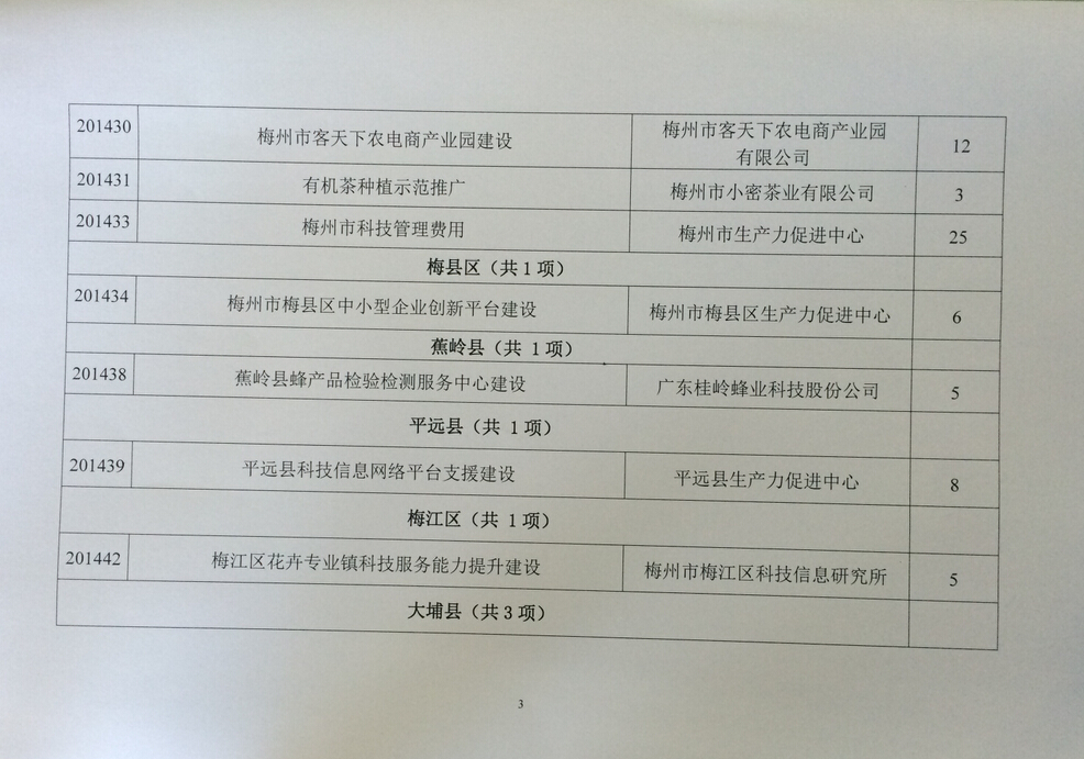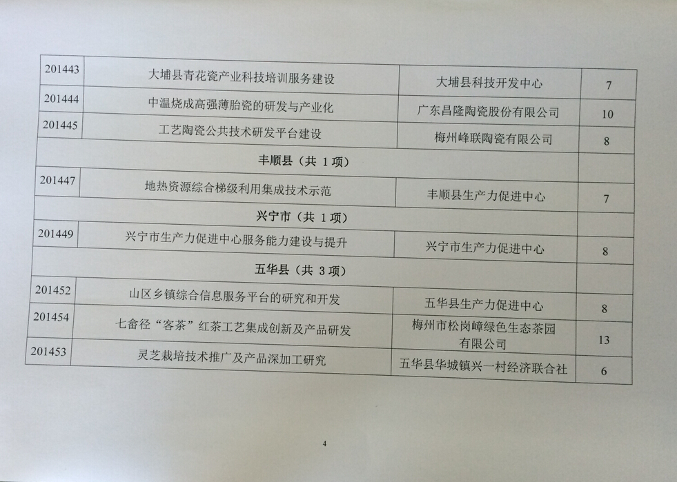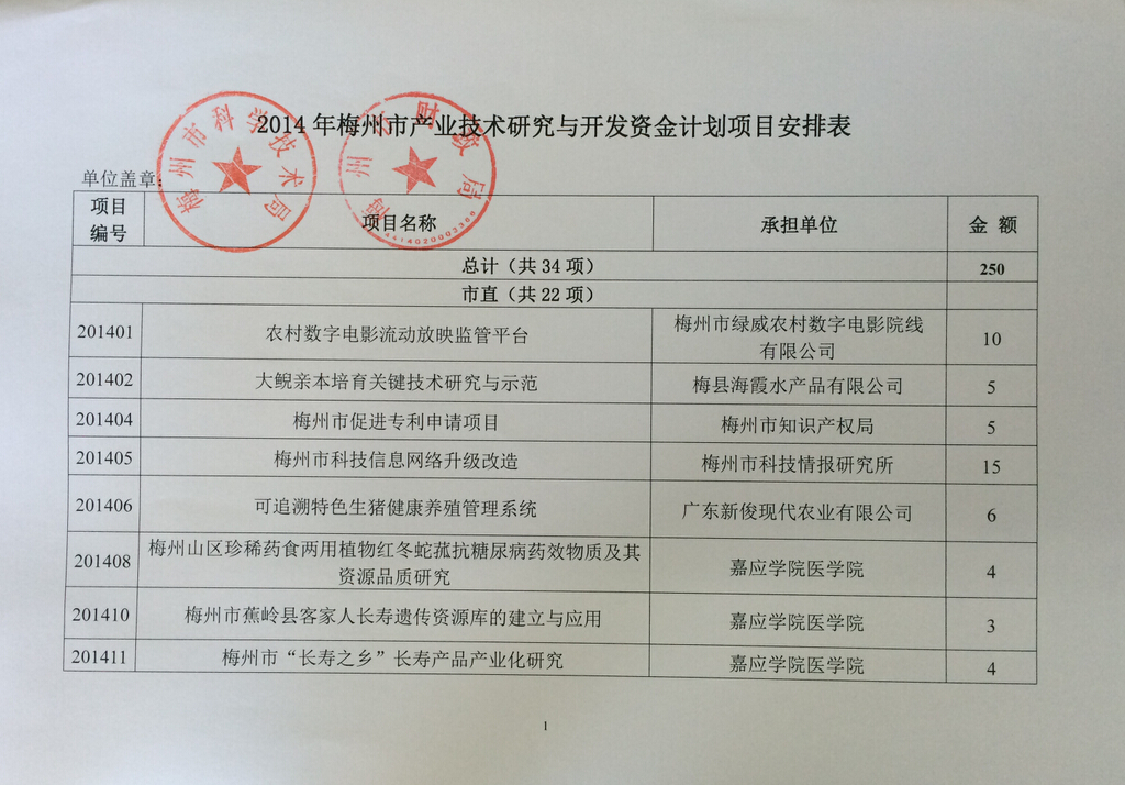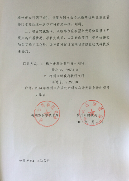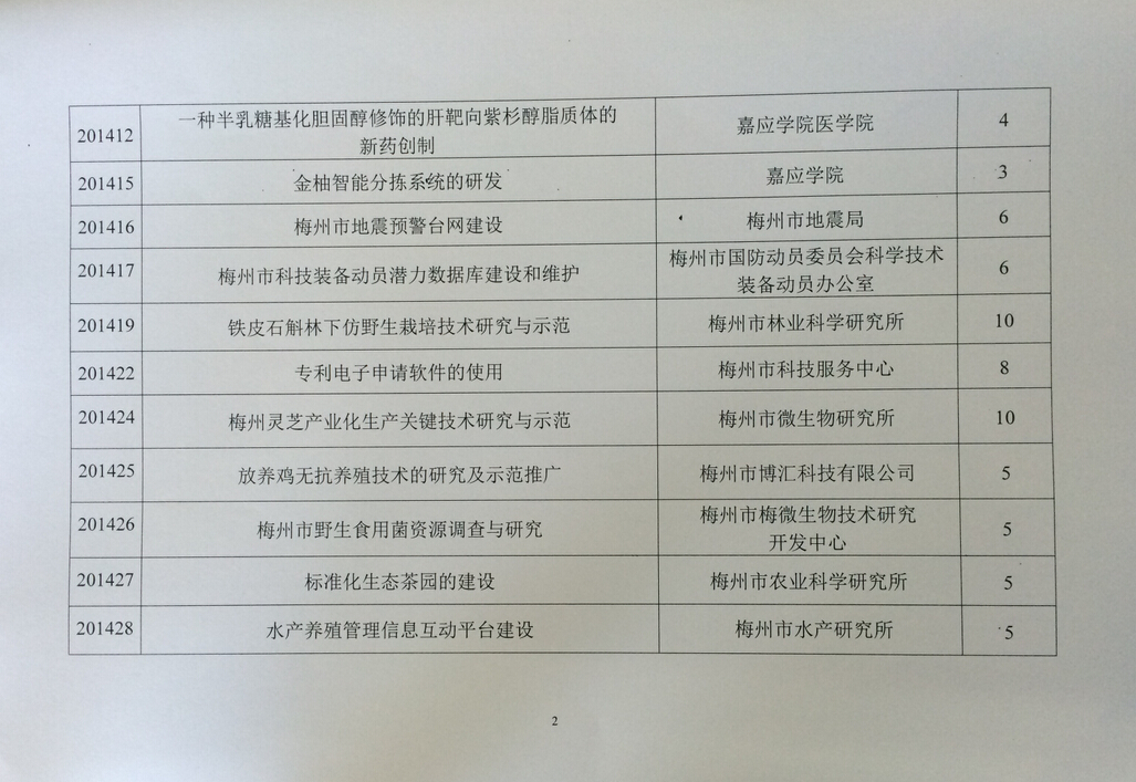 梅州市人民政府門戶網站 梅州市科學技術局 立項信息 關於下達2014年梅州市產業技術研究開發資金計劃項目的通知