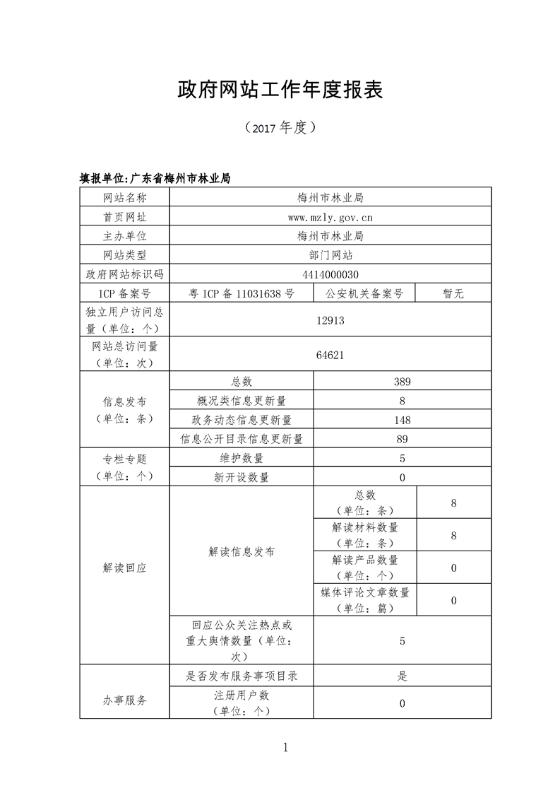 梅州市人民政府門戶網站 梅州市林業局 公示公告 2017年林業局網站工作年度報表