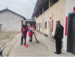 ▼蕉嶺縣文福鎮社工站組織青少年誌願者到特殊困難老年人開展衛生打掃