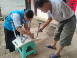 ▼梅縣區石扇鎮社工常態化入戶探訪關愛服務,指導服務對象使用藥物