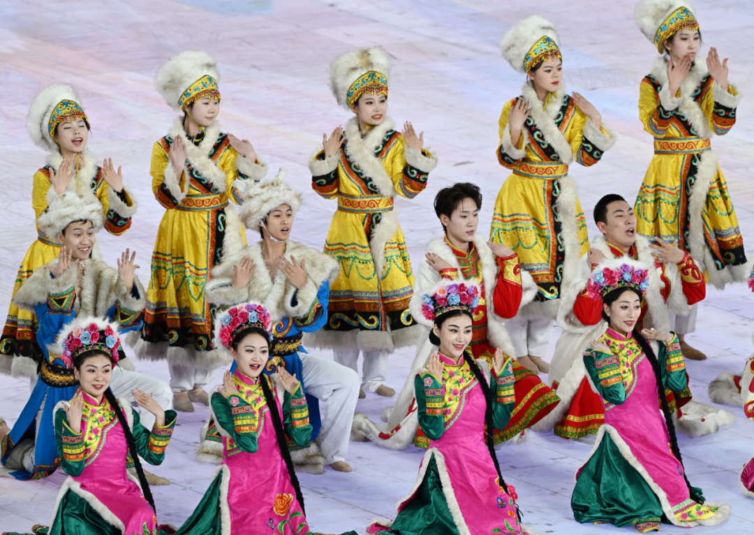 ▲2月7日,第九屆亞洲冬季運動會開幕式暖場表演。新華社記者 李紫恒攝