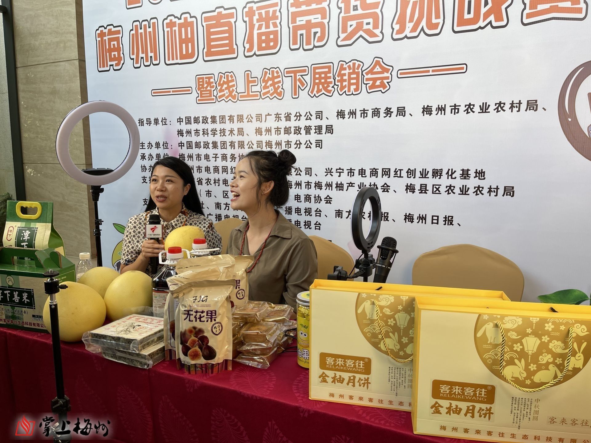 初秋時節,柚果飄香。2日上午,主題為“擦亮梅州柚品牌 郵政助力走全國”的2021年郵政“電商杯”梅州柚直播帶貨挑戰賽暨線上線下展銷會活動在梅城舉行。現場彙集了22家梅州柚及梅州柚加工農電商企業進行產品展銷,網紅主播們把直播室搬到了展廳,開啟直播和現場雙重帶貨模式,助力銷售“梅州柚”。