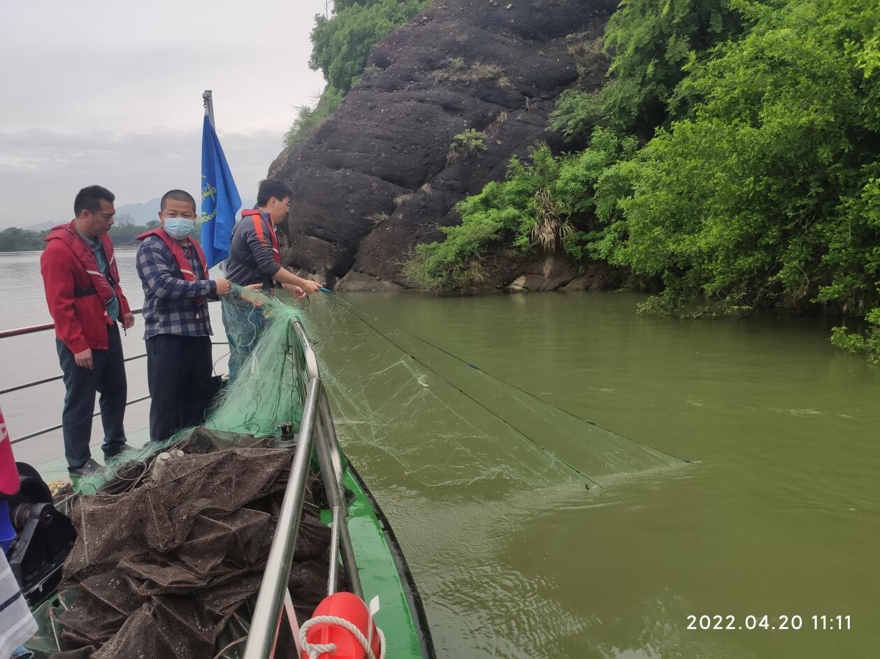 4月20日,梅州市農業農村局聯合梅州海事局在梅江河鬆口河段開展“亮劍2022”禁漁專項執法和水上交通與漁船安全專項整治行動,重點打擊禁漁期間電、炸、毒魚等違法違規行為,全麵排查船舶安全隱患,維護水上交通和漁業船舶安全。梅縣區農業農村局、鬆口海事處、鬆口鎮政府派員參加。
