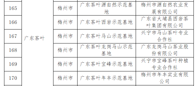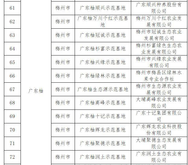 據悉,為深入推進農產品“12221”市場體係建設,助力“百縣千鎮萬村高質量發展工程”,促進當地特色優勢農產品品種培優、品質提升、品牌打造和標準化生產,打造區域公用品牌、企業品牌、產品品牌深度融合發展標杆,省農業農村廳組織開展了“粵字號”農業品牌示範基地複審與申報工作。經自主申報、地市審核推薦、市場滿意度評價、入庫監測、專家評審、網上公示等流程,共194個農業基地入選2022年“粵字號”農業品牌示範基地名單。其中梅州市名單如下: