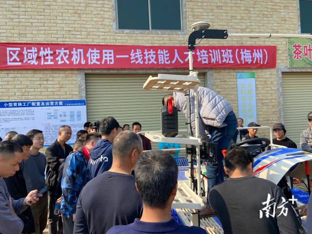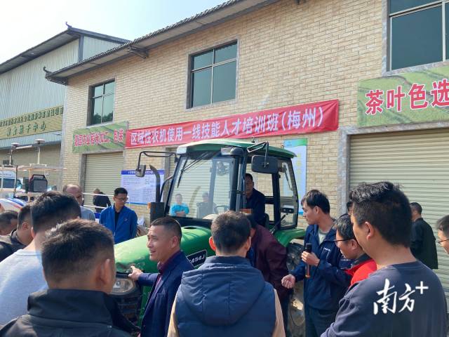 春日暖陽下,梅州市梅縣區田園農業機械服務專業合作社內,人潮湧動,傳來陣陣授課聲、交流聲。在合作社內的小型育秧設備、插秧機、拖拉機周邊,近百名農機手圍坐一團,聽著技術專家講解操作要點、注意事項等。