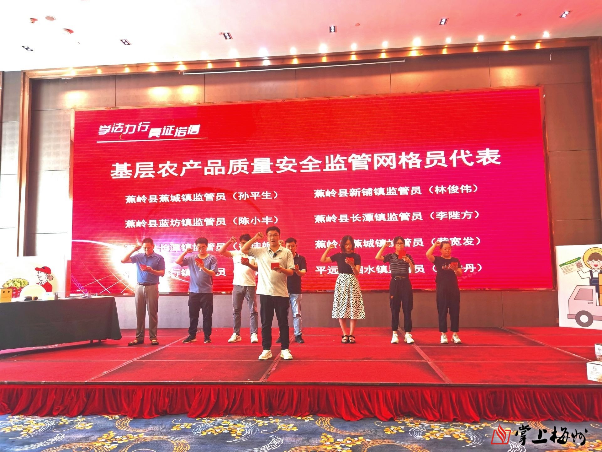 培訓前,主辦方還舉行了開班儀式和廣東達標合格農產品亮證行動宣誓儀式。與會人員觀看了視頻《達標亮證,廣東在行動》,隨後,生產主體代表、農產品經營主體、基層農產品質量安全監管網格員代表分別上台宣誓。培訓現場還排演了情景劇《農安追溯你知我知,你好我好大家好》。