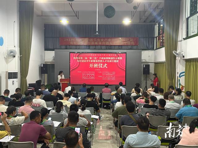 開班儀式上,驛站負責人胡振天介紹了新媒體營銷人才培養工程的情況,並舉行了培訓班班主任授聘儀式,期間,班主任宣讀了班規,學員代表進行了表態發言。此外,參會人員一同觀看了梅州市第三屆“新三農”手機短視頻創作大賽先導片,還邀請了往屆短視頻創作大賽獲獎代表進行發言分享。隨後,舉行了梅州市第三屆“新三農”手機短視頻創作大賽啟動儀式。