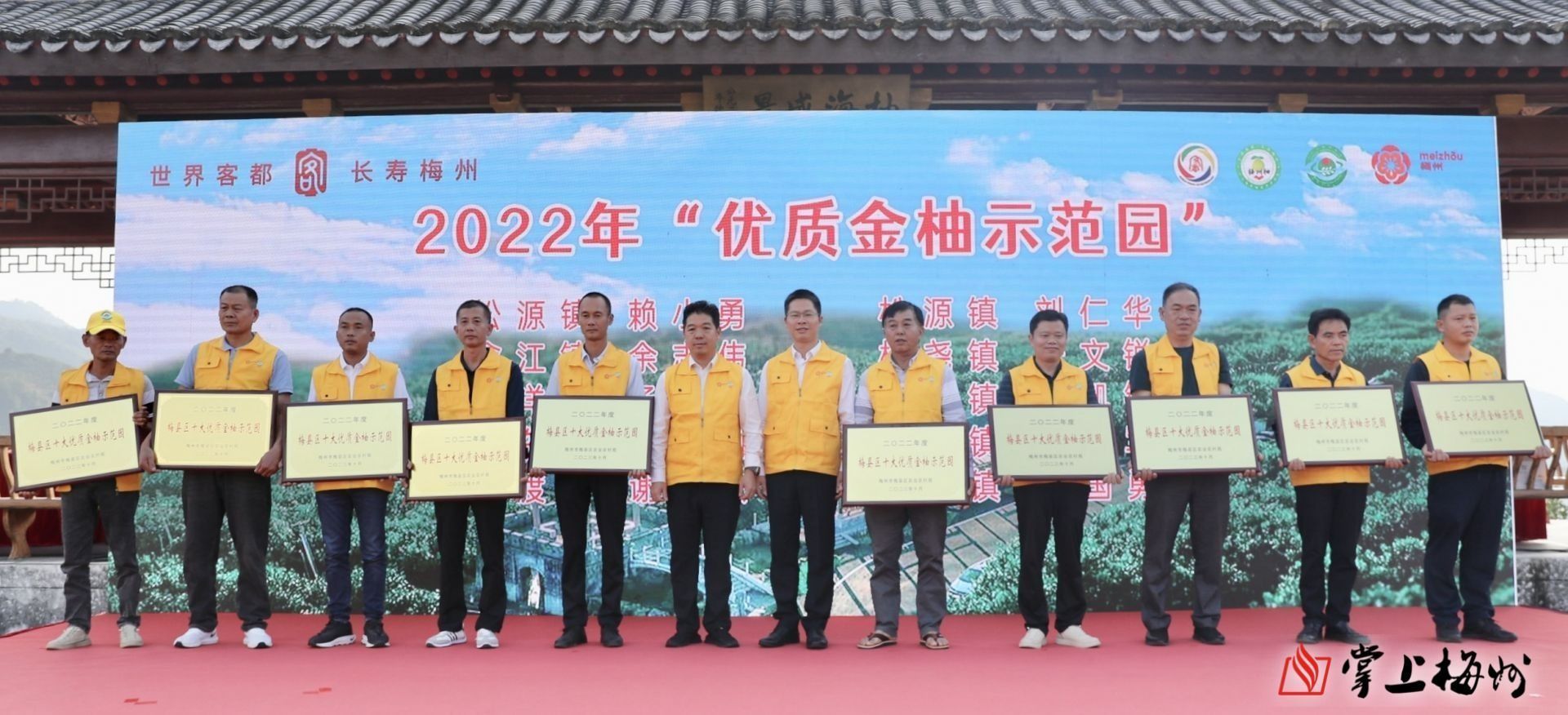頒發2022年度“梅縣區十大優質金柚示範園”獎牌。