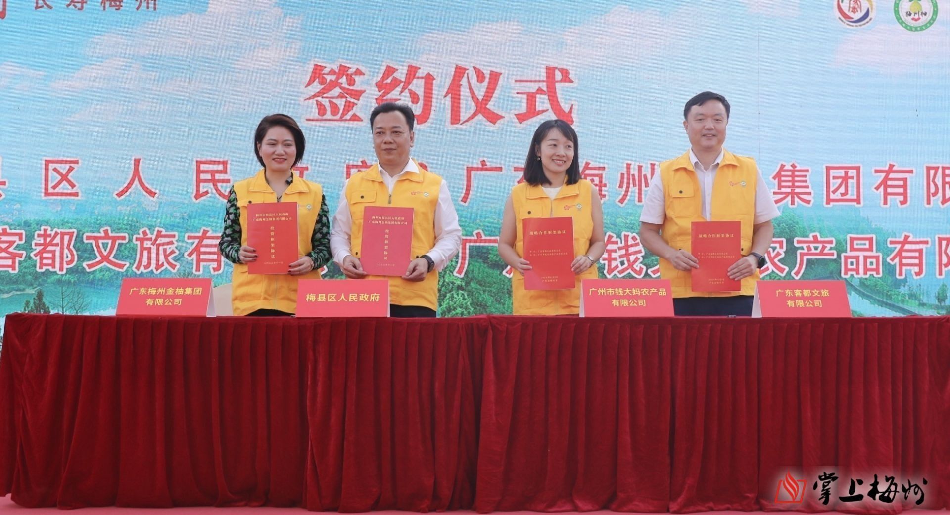 梅縣區人民政府與廣東梅州金柚集團有限公司簽約、廣東客都文旅有限公司與廣州市錢大媽農產品有限公司簽約。