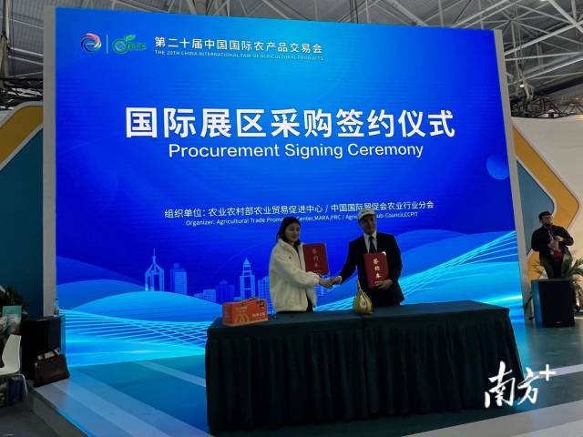 在活動現場,梅州“土特產”獲得一眾好評。“很清甜。”在嚐過梅州金柚後,來自迪拜采購團的香港明星食品貿易有限公司就與廣東梅州金柚集團有限公司簽約了金柚出口迪拜的采購意向書。