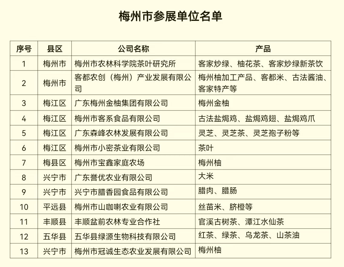 11月28日,第二十一屆中國國際農產品交易會及第十三屆廣東現代農業博覽會在廣州市中國進出口商品交易會展館 B 區開幕,市農業農村局組織我市金柚、茶葉、稻米、臍橙、鹽焗食品等13家單位和企業參展,誠邀全球品鑒獨具客家特色的“梅州味道”。