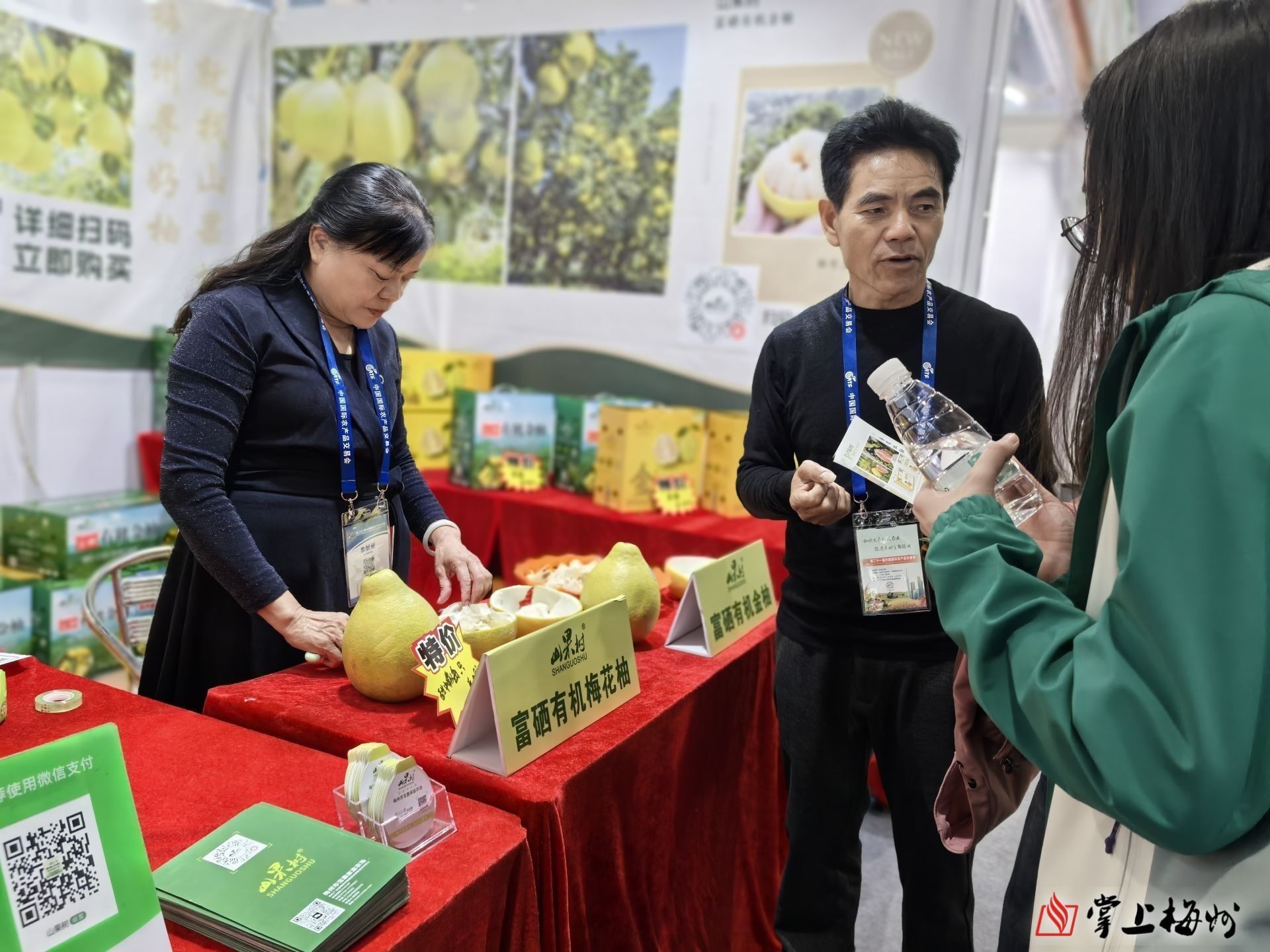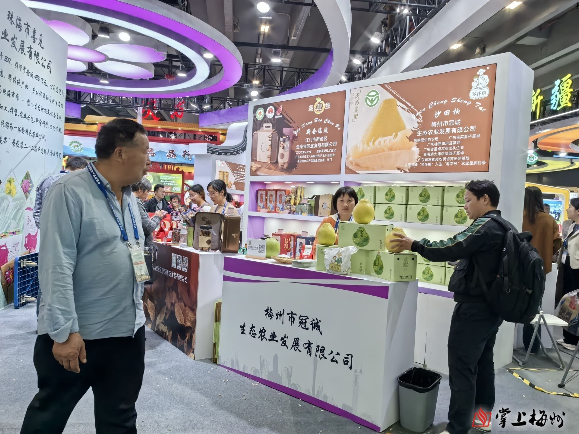 “當前正式金柚大量上市的季節,今年10月我市氣溫正常略低、降水量偏少,氣候條件利於金柚糖分轉化累積和品質提升。我們將優質的金柚帶到了展會現場,希望通過這個國際化的展示平台,把梅州柚這一‘金字招牌’擦得更亮。”廣東梅州金柚集團有限公司總經理李永生告訴記者。據悉,梅州是中國蜜柚之鄉、中國金柚之鄉,全市柚類種植麵積達65萬畝、產量超100萬噸,梅縣金柚、大埔蜜柚獲評國家地理標誌保護產品、廣東省農特優新農產品。