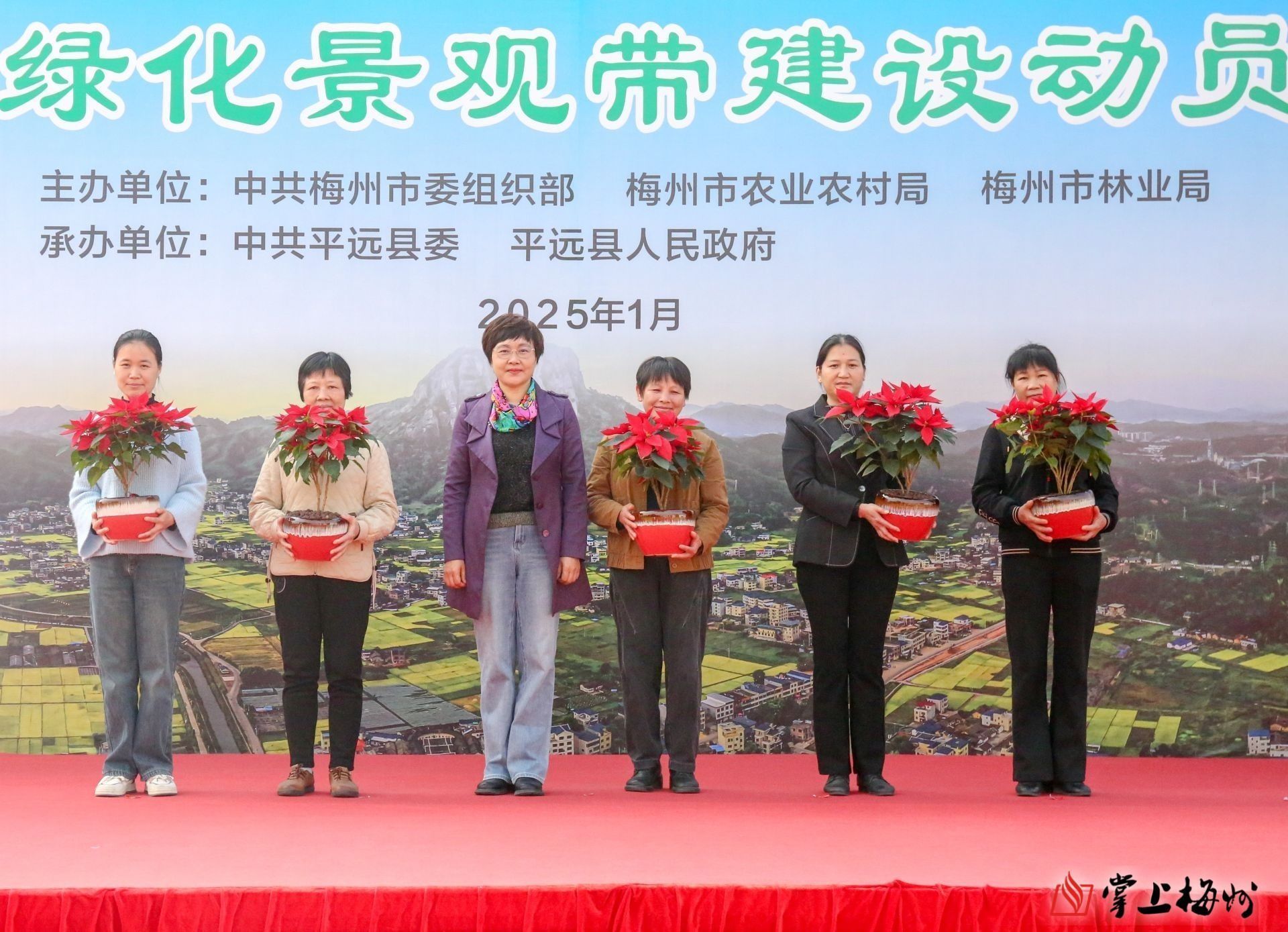 1月24日,梅州市綠美鄉村“紅梅迎春 千村增綠”行動暨鄉村綠化景觀帶建設動員活動在平遠縣石正鎮先鋒村舉行。市委常委、組織部部長羅盛芬,副市長謝欽文參加活動。