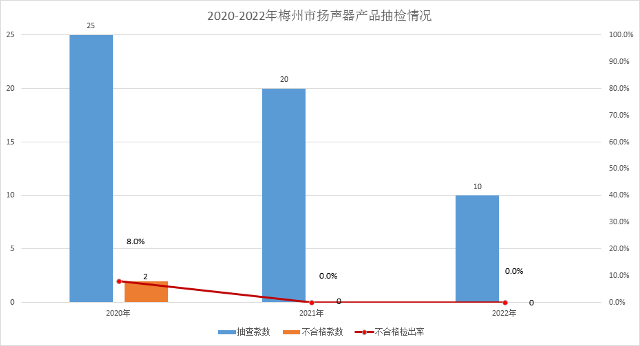 圖1 2020-2022年梅州市揚聲器產品抽檢情況