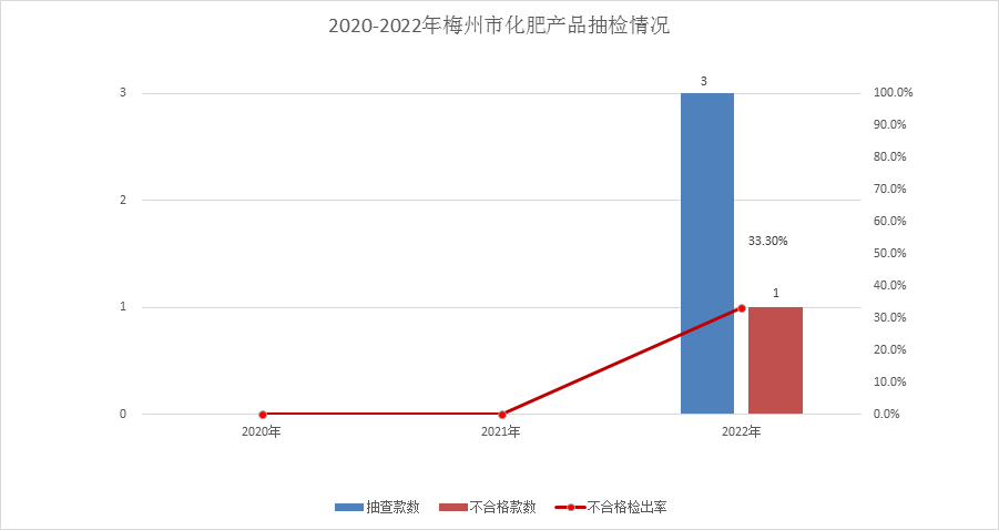 圖2 2020-2022年梅州市化肥產品抽檢情況