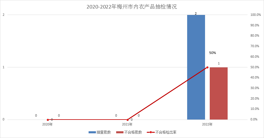 圖4 2020-2022年梅州市內衣產品抽檢情況