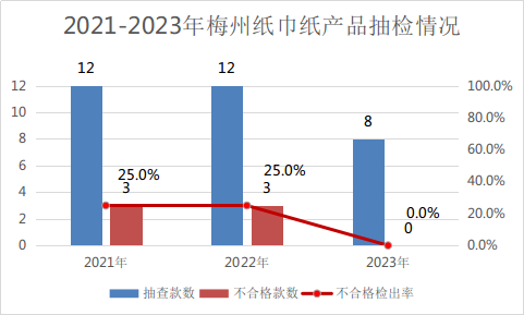 圖1 2021-2023年梅州市紙巾紙產品抽檢情況